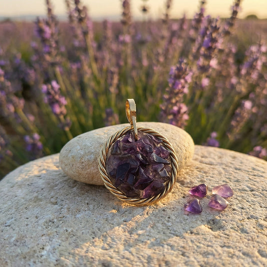 Amulet tensorowy z Ametystem – Mosiądz pozłacany