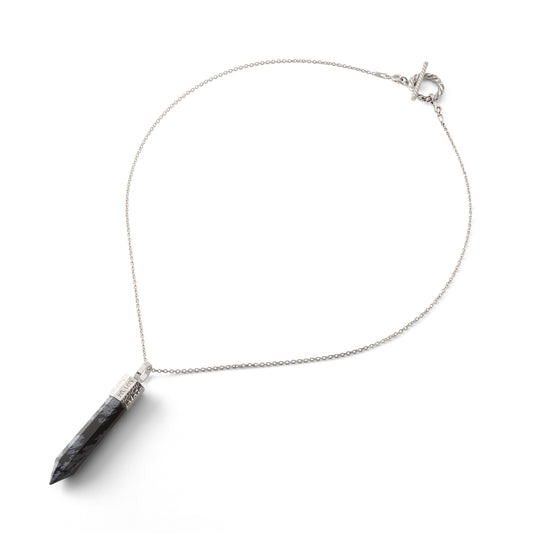 Halskette 44 cm mit Schneeobsidian – 925er Silber vergoldet mit Platin
