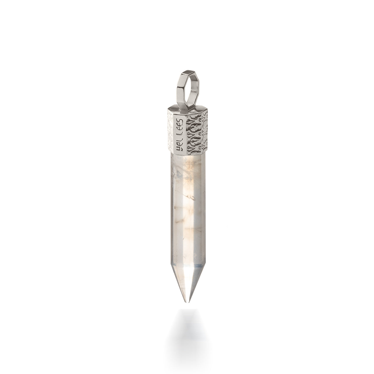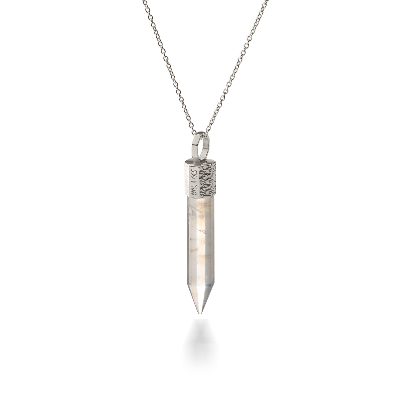 Halskette mit Bergkristall 44 mm, 925er Sterlingsilber, platinplattiert, aus der Kollektion TERRA 44 Es ist ein Talisman der Reinheit, Ausgeglichenheit und universellen Energie. Er stärkt Absichten, reinigt die Aura und harmonisiert den Raum. Ideal für alle, die innere Klarheit, spirituelle Führung und Harmonie mit der Welt suchen.