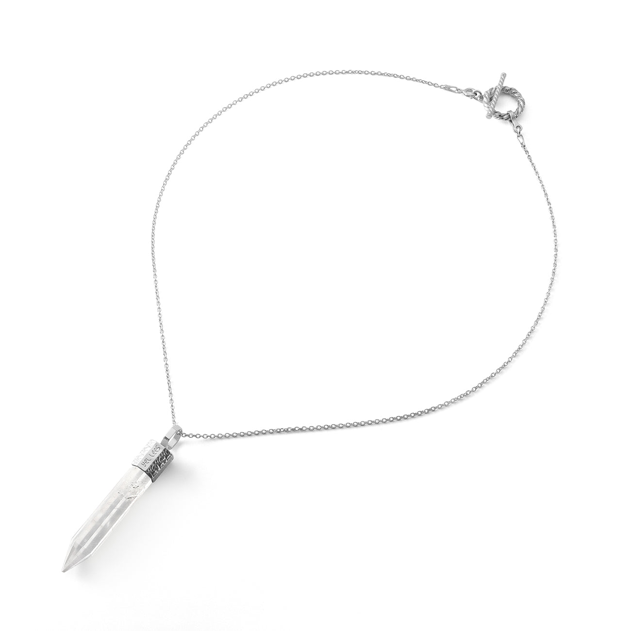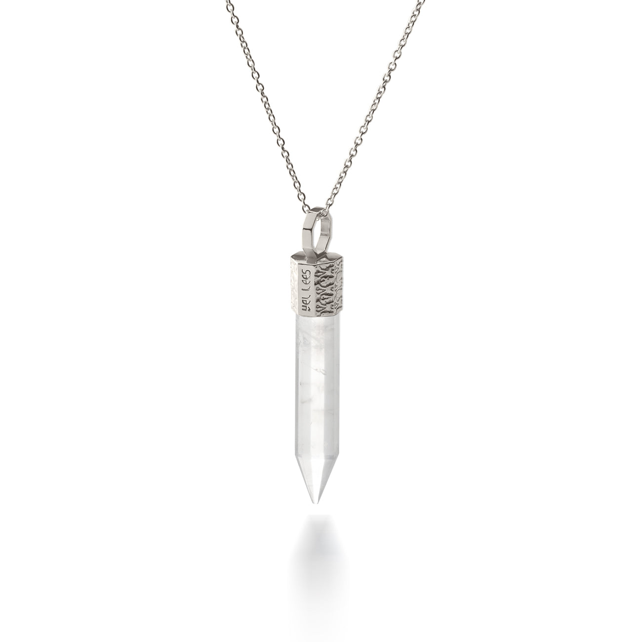 Halskette mit Bergkristall 44 mm, 925er Sterlingsilber, platinplattiert, aus der Kollektion TERRA 44 Es ist ein Talisman der Reinheit, Ausgeglichenheit und universellen Energie. Er stärkt Absichten, reinigt die Aura und harmonisiert den Raum. Ideal für alle, die innere Klarheit, spirituelle Führung und Harmonie mit der Welt suchen.