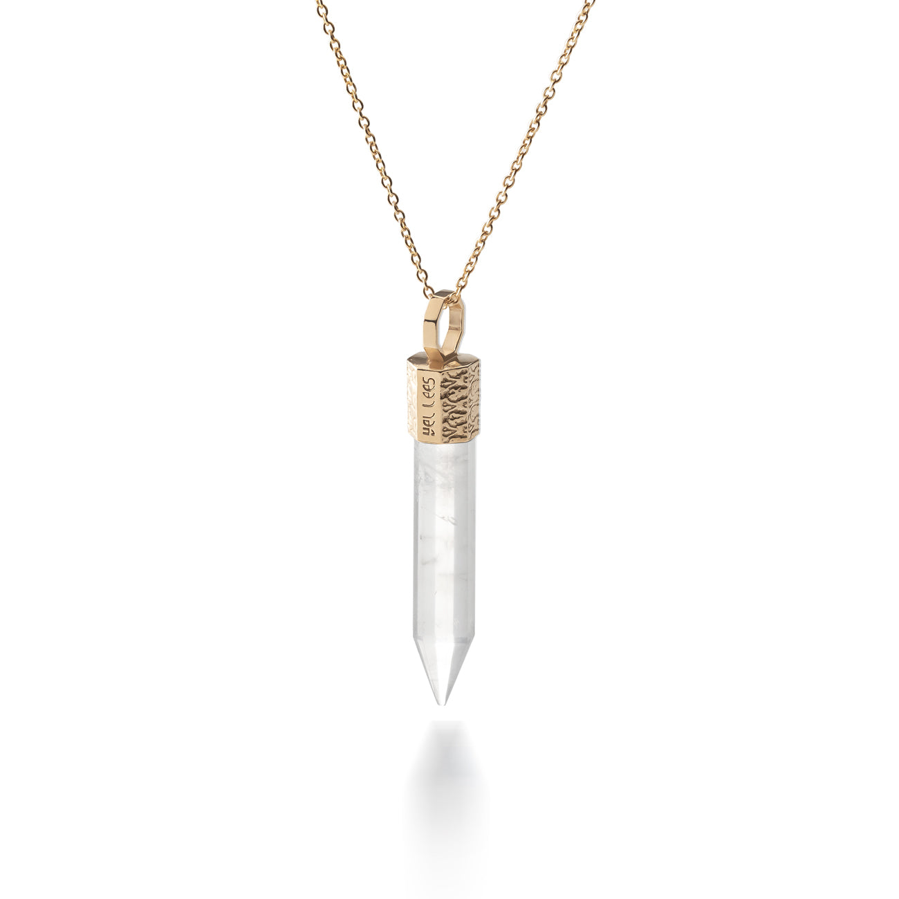 Halskette mit Bergkristall 44 mm vergoldetes 925er Silber aus der Kollektion TERRA 44 Es ist ein Talisman der Reinheit, Ausgeglichenheit und universellen Energie. Er stärkt Absichten, reinigt die Aura und harmonisiert den Raum. Ideal für alle, die innere Klarheit, spirituelle Führung und Harmonie mit der Welt suchen.