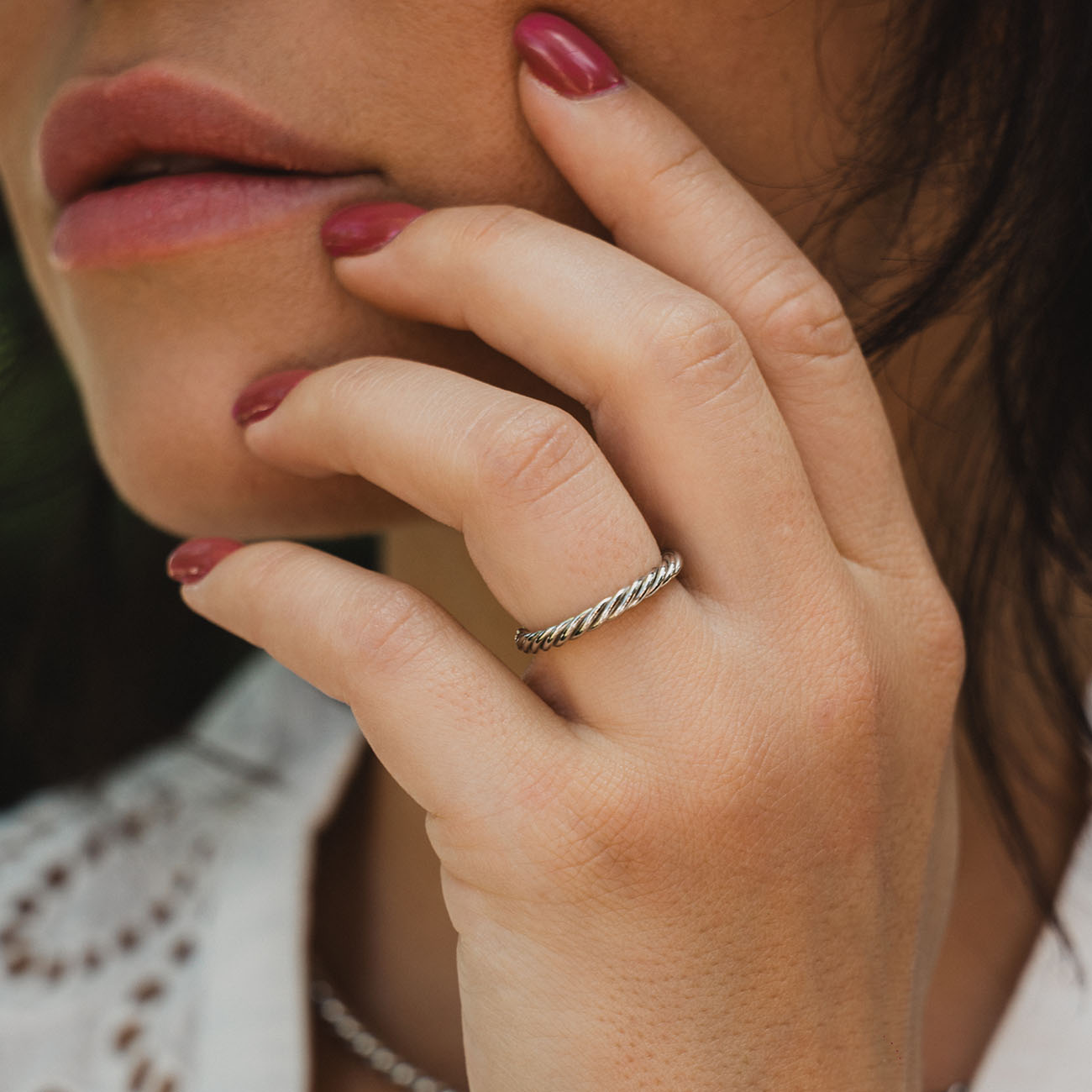 Srebrny pierścionek tensorowy pokryty platyną - Amulet ochronny