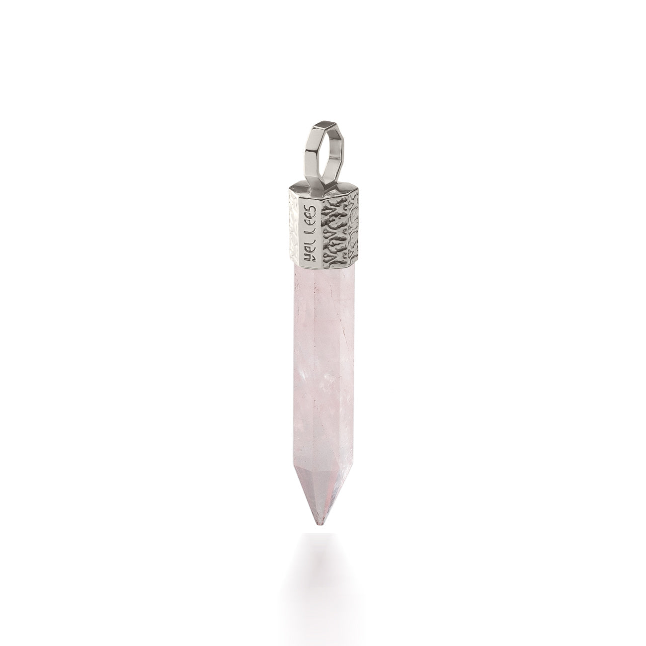 Zawieszka z kwarcem różowym 44 mm z mosiądzu 925 pokrytego platyną z kolekcji TERRA 44 to talizman serca i miłości. Łączy w sobie delikatność, empatię i duchową równowagę. Idealny dla osób, które pragną żyć w zgodzie z uczuciami, przyciągać harmonię i pielęgnować ciepło relacji.